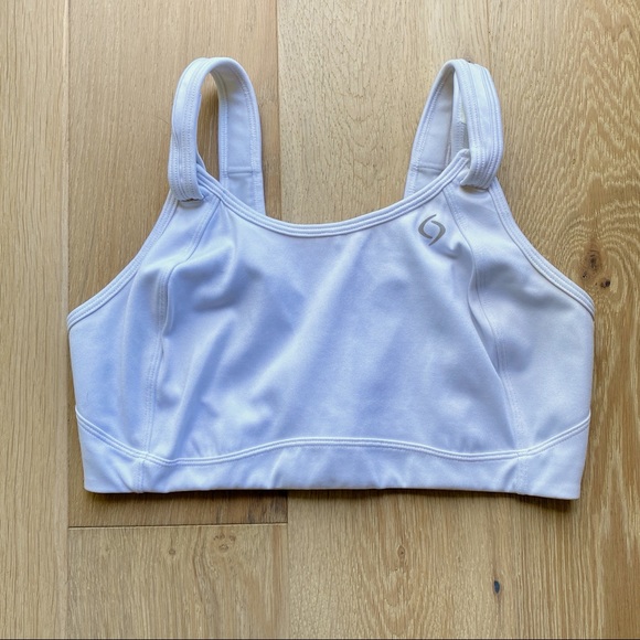 Moving Comfort Maia Sports Bra White Medium-Impact Support Sz 34D EUC.